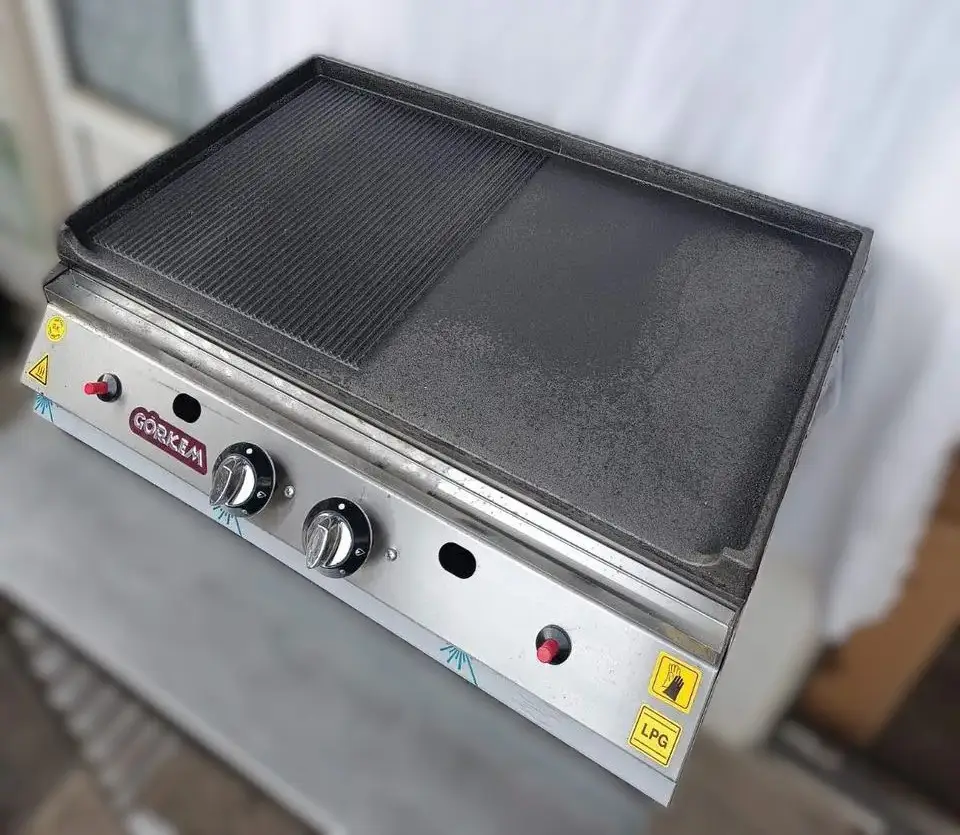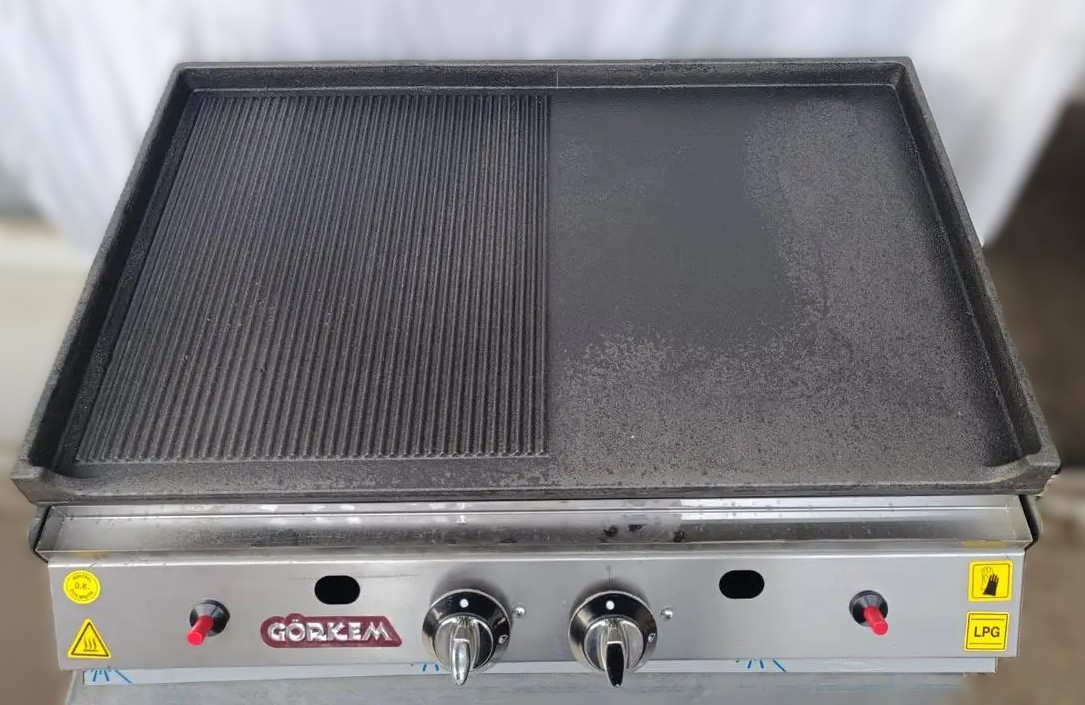 Görkem GE70 — потужна газова жарочна поверхня з комбінованою робочою зоною (гладка + рифлена), призначена для приготування широкого спектра страв: від соковитих стейків і овочів-гриль до морепродуктів і бургерів. Велика площа 700×500 мм дозволяє готувати кілька порцій одночасно, що робить цю модель ідеальним рішенням для кафе, ресторанів та фудтраків.