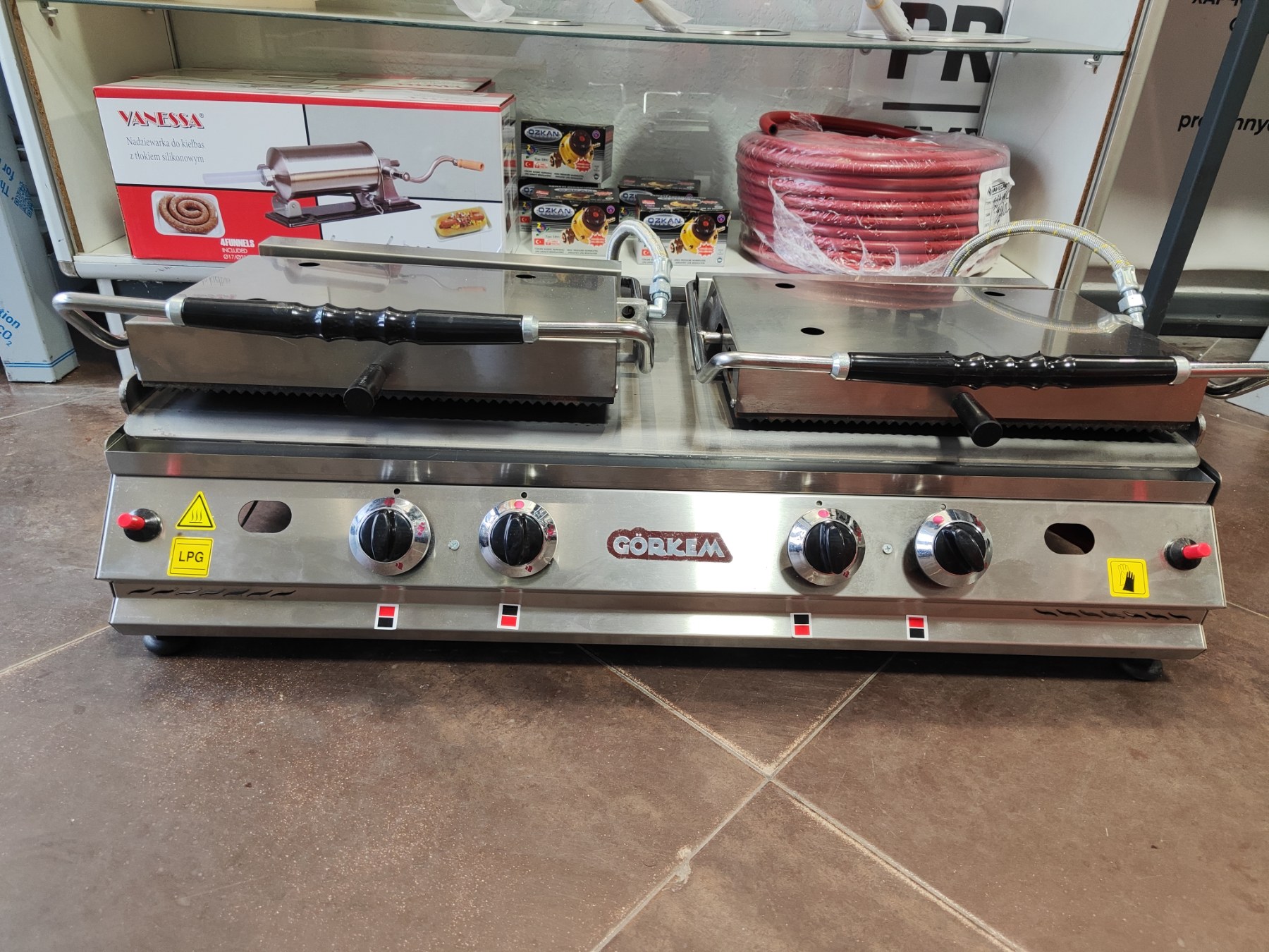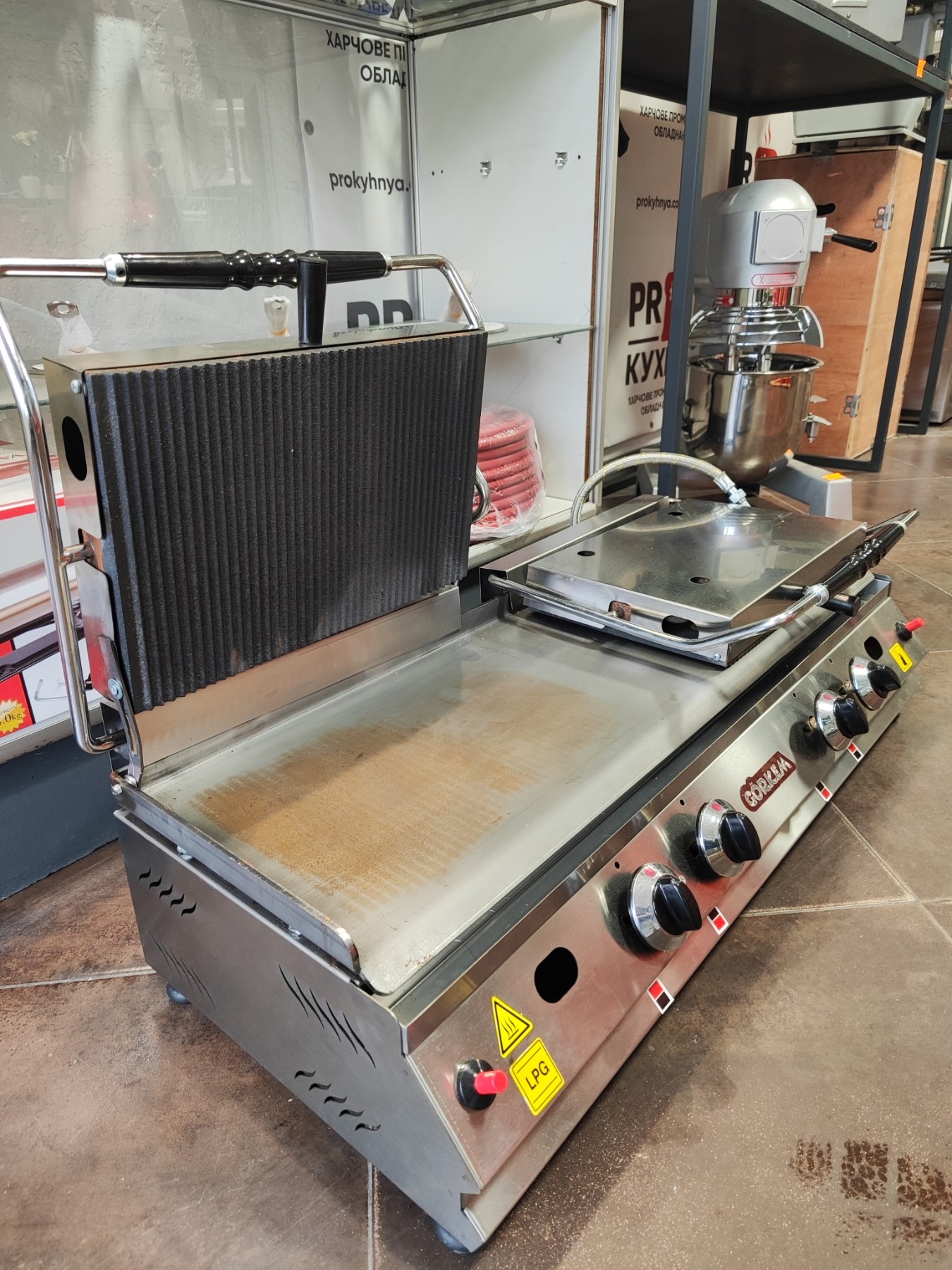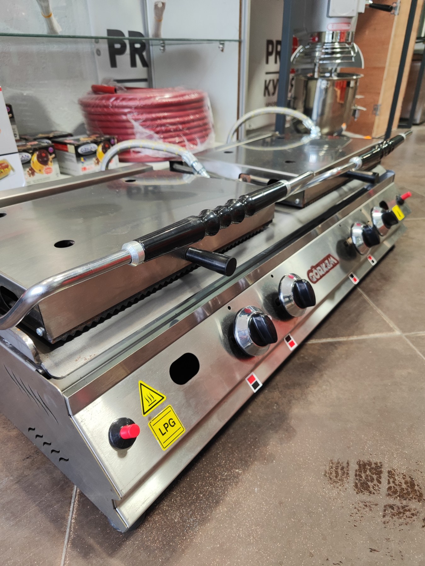 Контактний гриль притискний Görkem — це високоякісне та універсальне обладнання, створене для професійних кухонь, кафе і ресторанів. Завдяки одночасному нагріванню з двох сторін гриль забезпечує швидке й рівномірне приготування м’яса, овочів, риби, сендвічів та бургерів, зберігаючи соковитість продуктів і формуючи красиву рум’яну кірочку.
