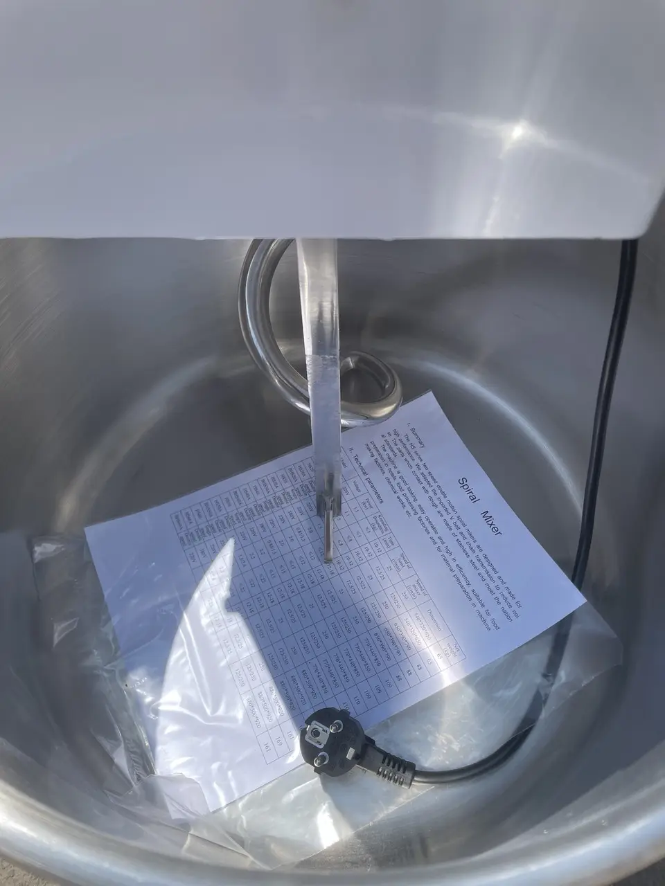 Корпус тістоміса повністю виготовлений зі сталі, а всі елементи, що контактують з продуктами (діжа та спіраль), виконані з нержавіючої сталі, що гарантує гігієнічність, довговічність і стійкість до зносу.