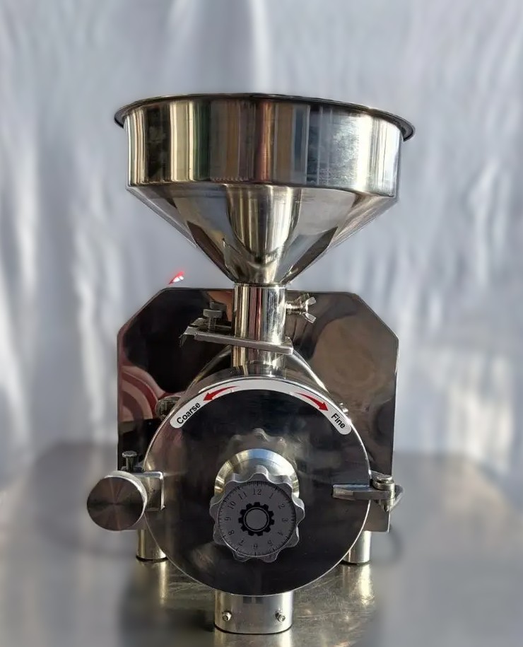Міцні жорна діаметром 140 мм працюють на швидкості 1500 об/хв, забезпечуючи стабільний помел без перегріву продукту. Прилад підходить для подрібнення кави, спецій, перцю, цукру, маку, сої, зерна, трав, горіхів та іншої сухої сировини.