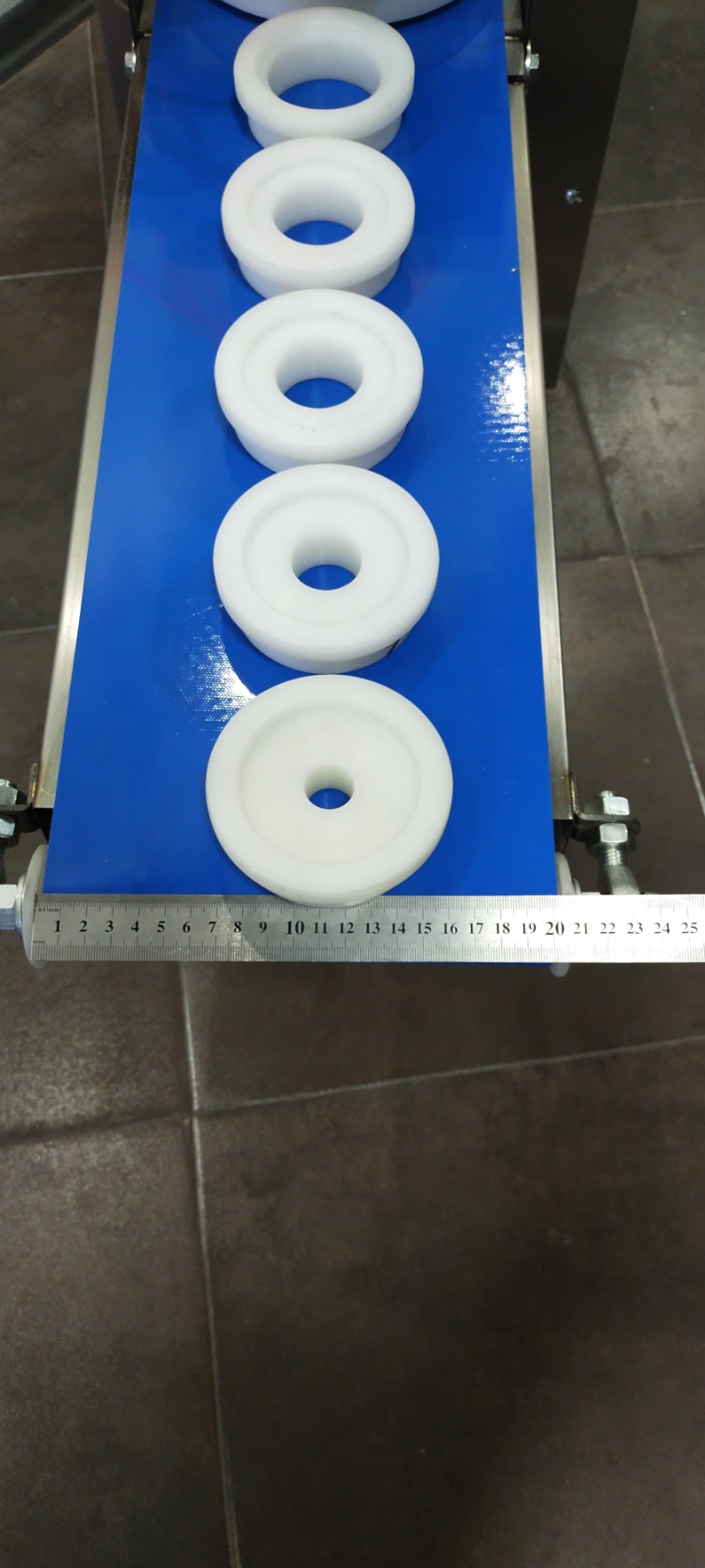 Ділитель тіста дрібноштучний  D03/P (тістоділитель) — це надійне професійне обладнання для пекарень, кондитерських та підприємств громадського харчування. Модель оснащена відвідною конвеєрною стрічкою та пневматичним штампом, що дозволяє формувати тістові заготовки будь-якої форми — під піцу, лаваш, питу, пряники та інші вироби.