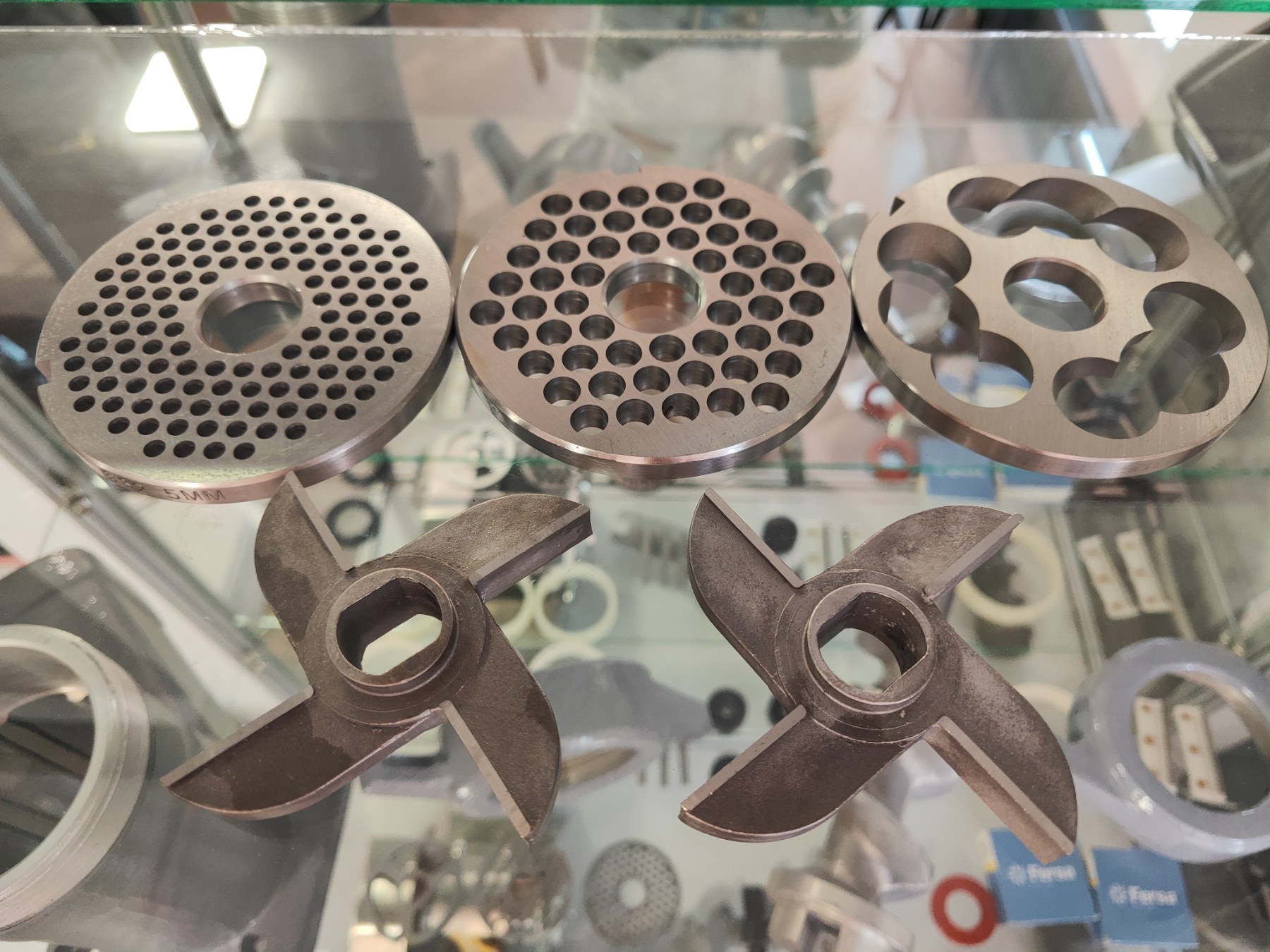 У комплект ножів і решіток до м’ясорубки МІМ-600 входять: