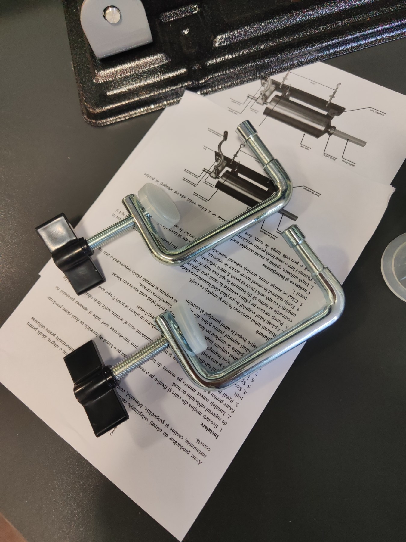 Шприц прикріплюється до стільниці спеціальною сталевою платформою за допомогою двох затискачів