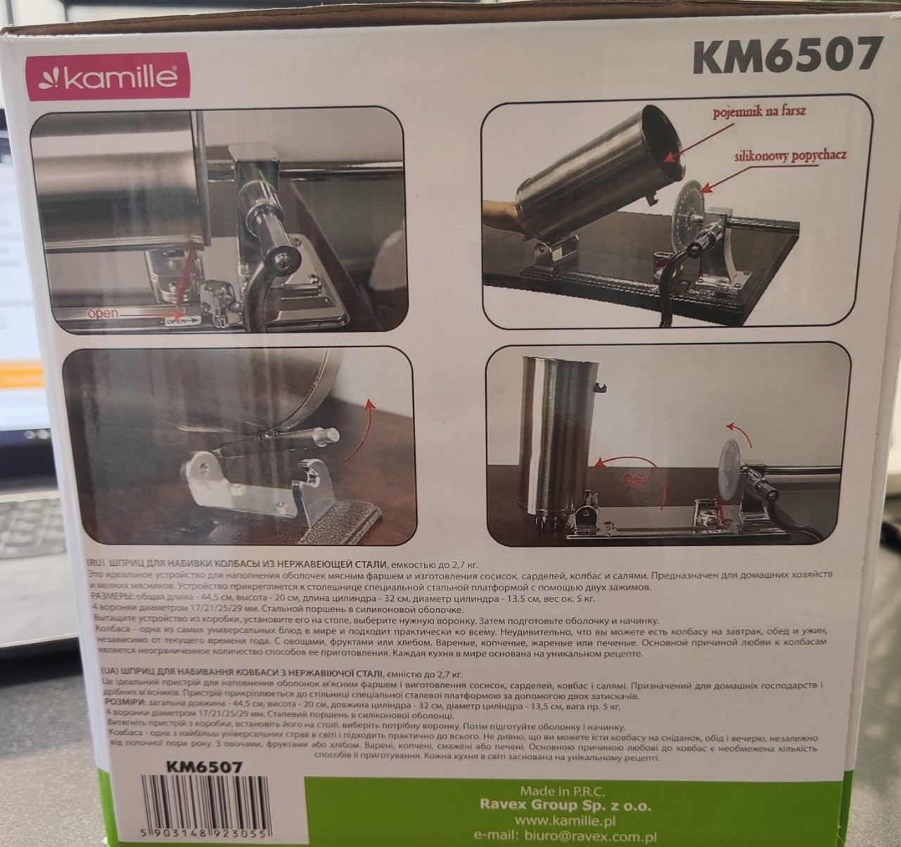 Ідеальний пристрій для наповнення оболонок м’ясним фаршем і виготовлення сосисок , сарделей, ковбас і салямі.