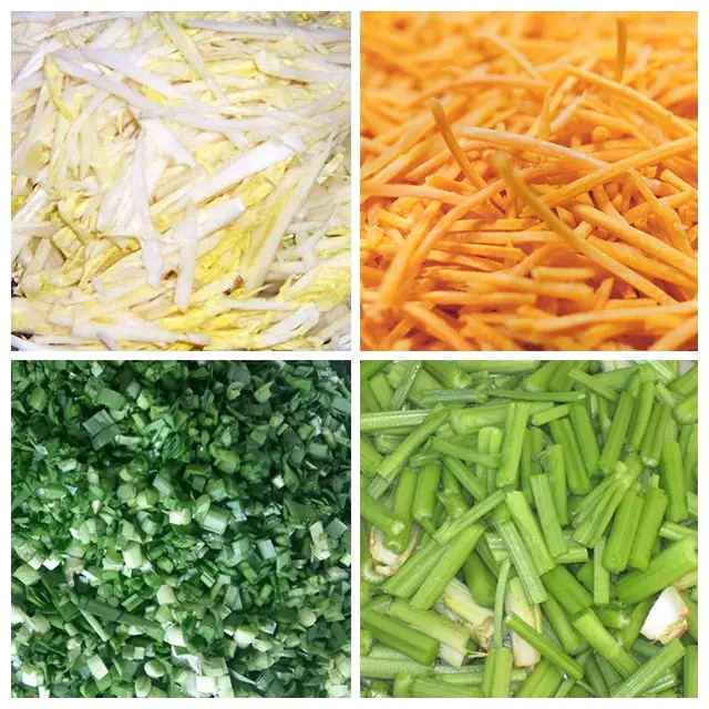 Обладнання дозволяє виконувати різні типи нарізки: кубик, брусок, слайс, соломка.