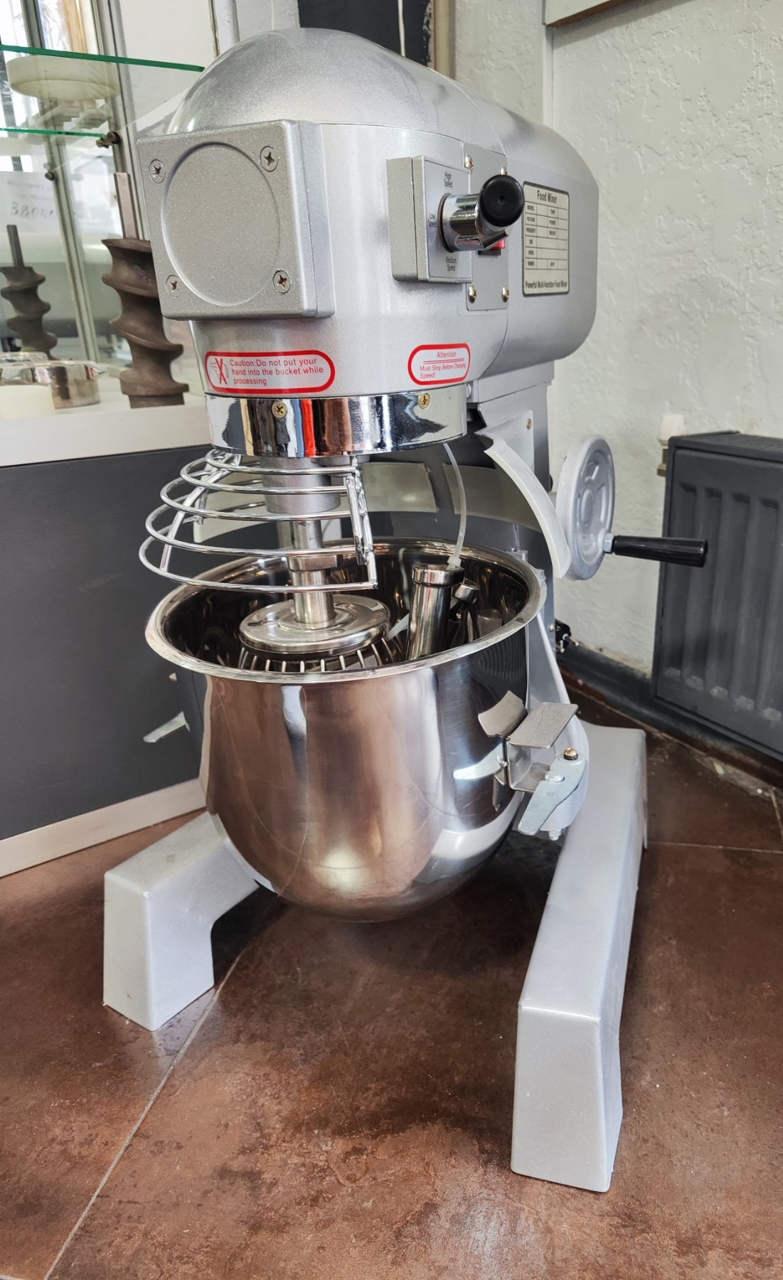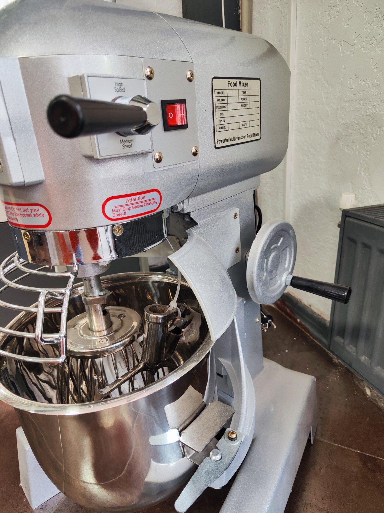 Планетарний міксер HR-10 — потужне професійне обладнання для приготування різних видів тіста та кремів. Завдяки 3 насадкам (вінчик, лопатка, спіраль) та двом рівням швидкості, міксер підходить для збивання білкових, заварних і масляних кремів, замішування бісквітного, пісочного, дріжджового (з високою вологістю), млинцевого та заварного тіста, а також суфле.
