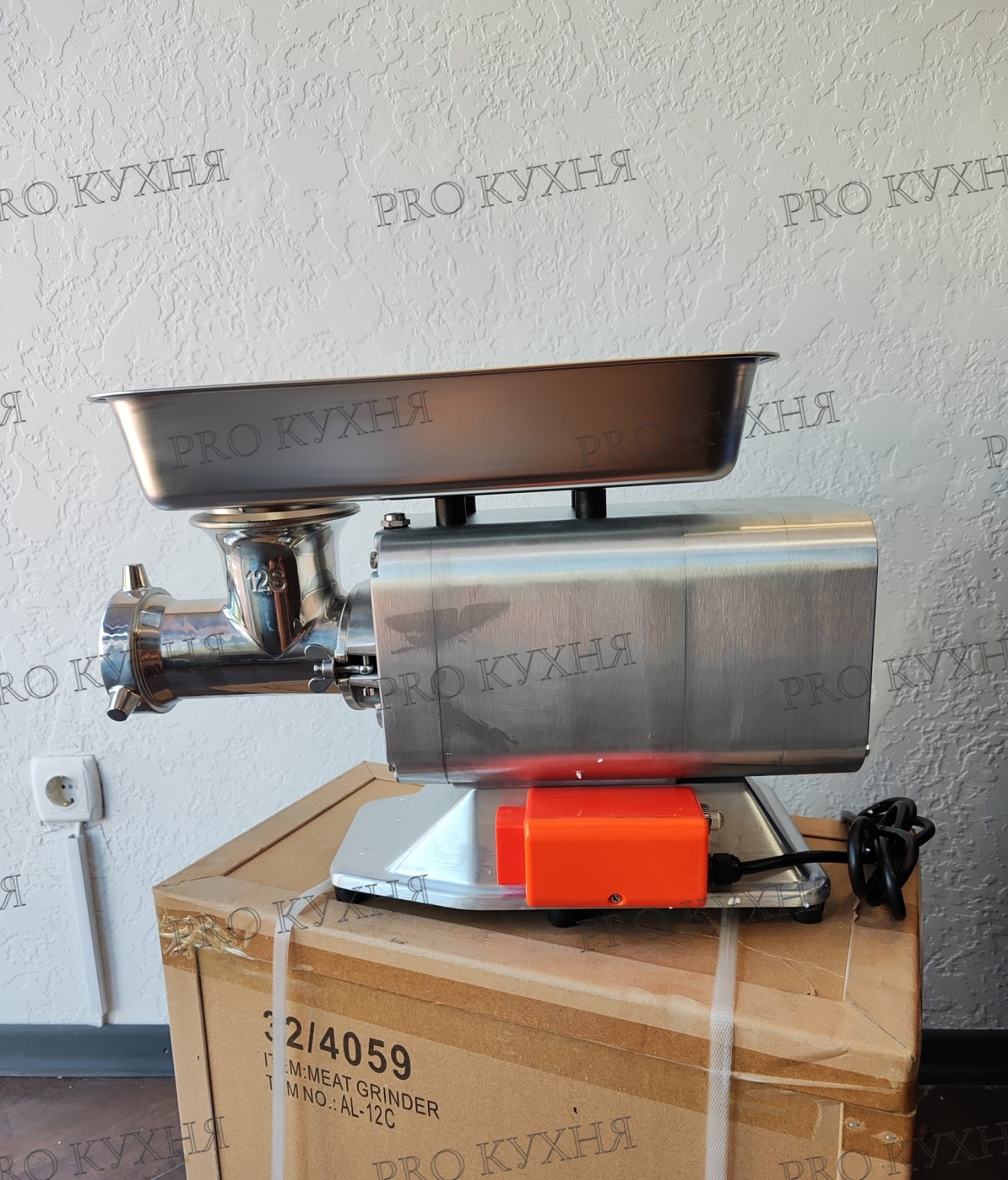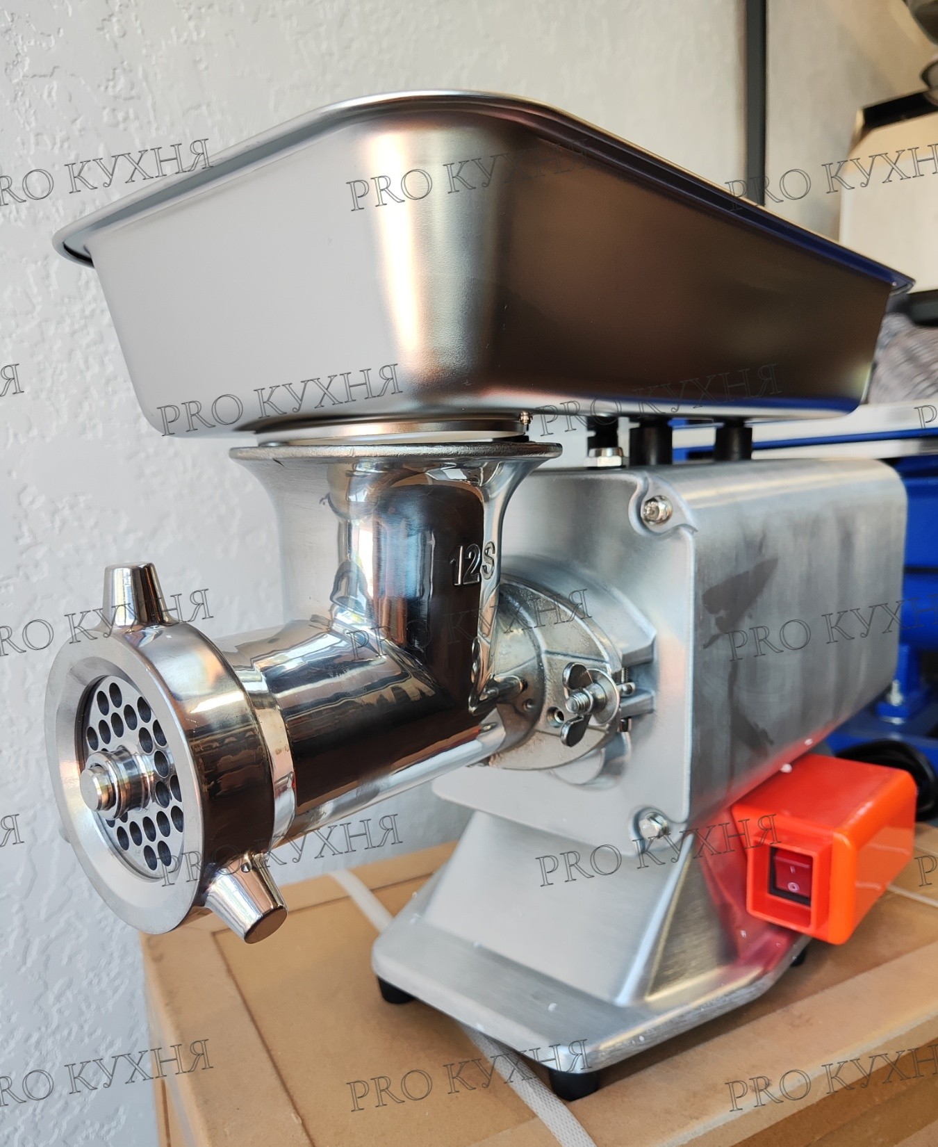 М’ясорубка працює від мережі 220 В і має швидкість обертання 180 об/хв, забезпечуючи рівномірний та чистий помел. Габарити моделі — 500 × 230 × 310 мм, вага 25 кг, що робить її стійкою, але водночас зручною для розміщення на робочому столі.