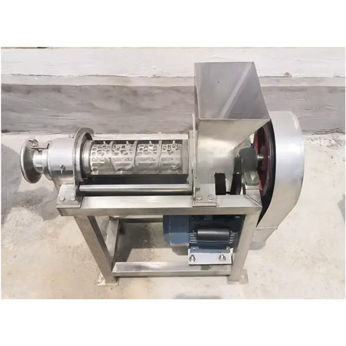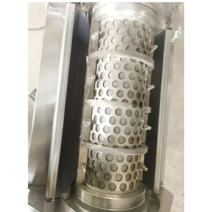 Сік проходить крізь фільтр із нержавіючої сталі, а макуха виходить через регульований отвір.