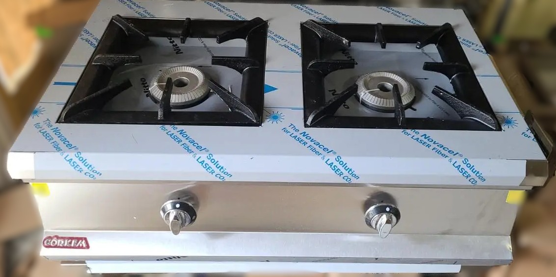 Корпус виготовлений із нержавіючої сталі, що гарантує довговічність і легке очищення. Плита під’єднується до балонного газу (LPG) та розрахована на цілодобову експлуатацію.