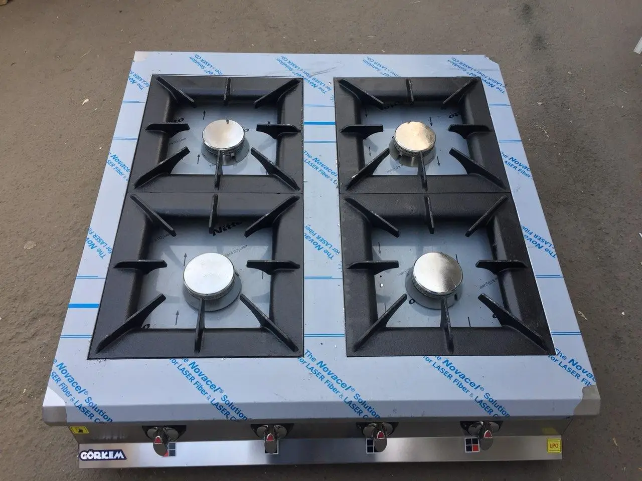 Görkem PSO 40 — потужна професійна газова плита, створена для інтенсивного використання у ресторанах, кафе та виробничих кухнях. Оснащена чотирма конфорками розміром 400×400 мм, вона забезпечує високу продуктивність і стабільне нагрівання навіть під час тривалої роботи.