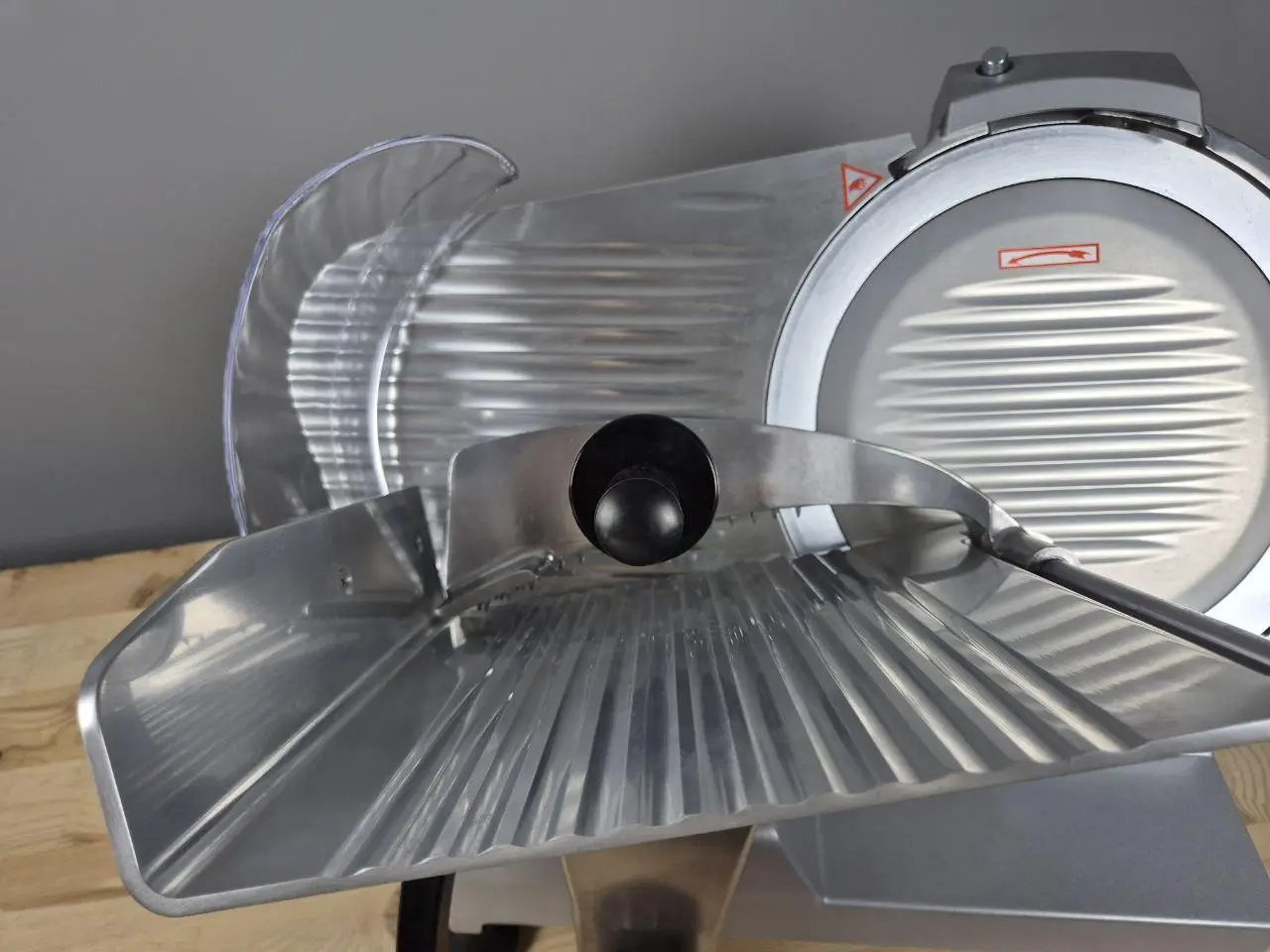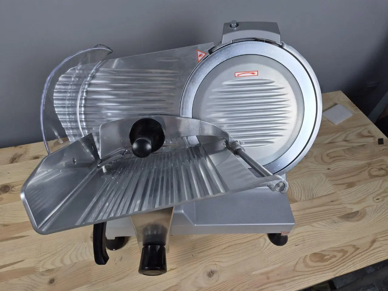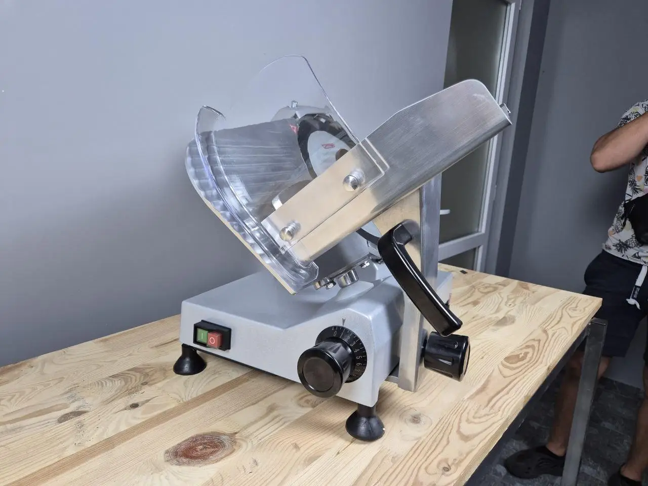 Професійний гастрономічний слайсер SZ-300A — ідеальний вибір для точної та швидкої нарізки м’яса, сирів, овочів та делікатесів. Потужний двигун, гострий ніж та вбудована система заточки гарантують бездоганну якість зрізу. Надійний корпус і стійка конструкція — для щоденної професійної роботи.