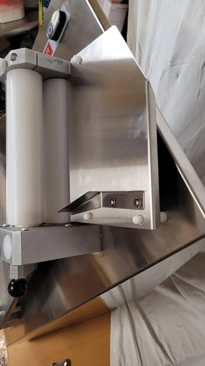 Модель є універсальною тісторозкаткою, оснащеною двома парами валків, що забезпечує рівномірне та стабільне формування тістових заготовок. Оптимальна довжина валків дозволяє працювати з різними форматами тіста, зберігаючи однакову товщину по всій площині.