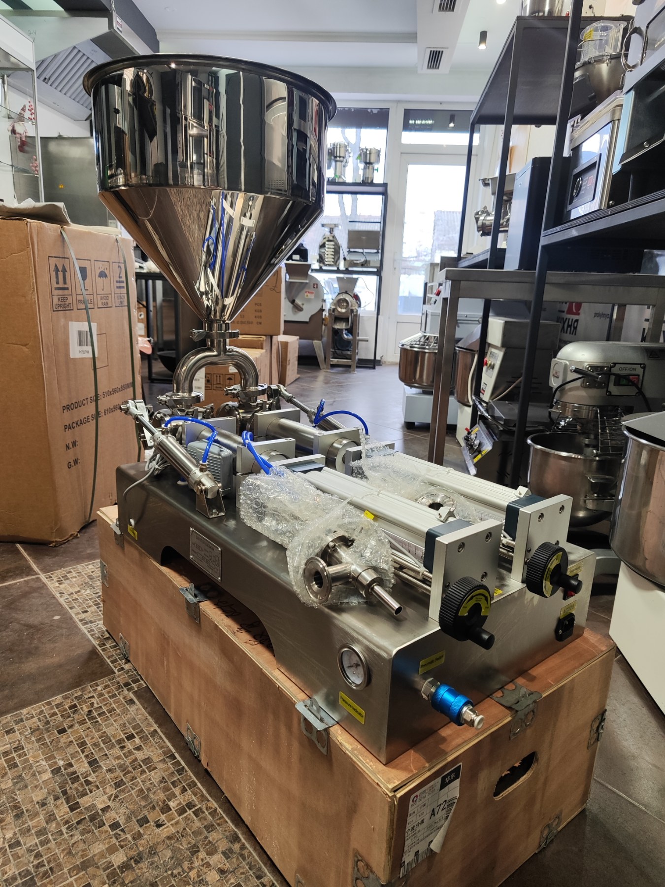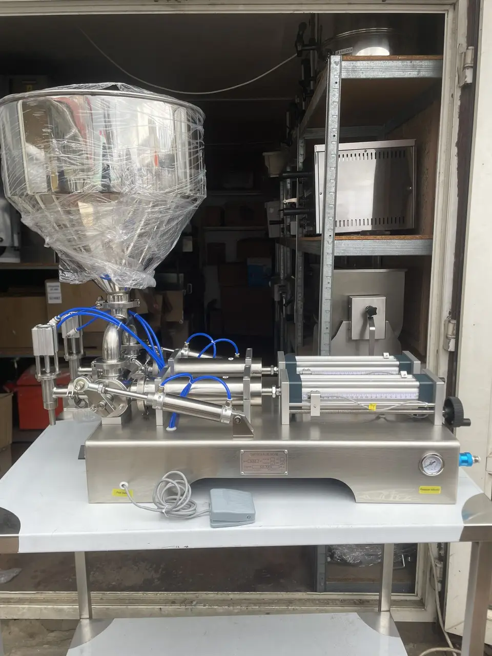 Если вам нужна более простая модель, обратите внимание на пневматический горизонтальный дозатор G1WY-100-1000. Он применяется для дозировки жидких, густых и вязких продуктов и паст, имеет высокую производительность и бункер объемом 30л. Подходит для меда, джемов, соусов, паст и жидких материалов с гранулами. Поворотный клапан контролирует подачу материала и отсекает капли, обеспечивая чистоту рабочего процесса.